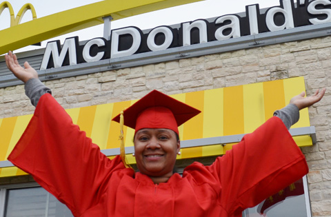 After Alfreda was promoted to a General Manager in 2014, she learned about Archways to Opportunity. Although she had been embarrassed about not having a high school diploma, she took the plunge and spoke to HR and her Supervisor about enrolling in Career Online High School (COHS). And McDonald’s paid all the costs – it was totally free for Alfreda.